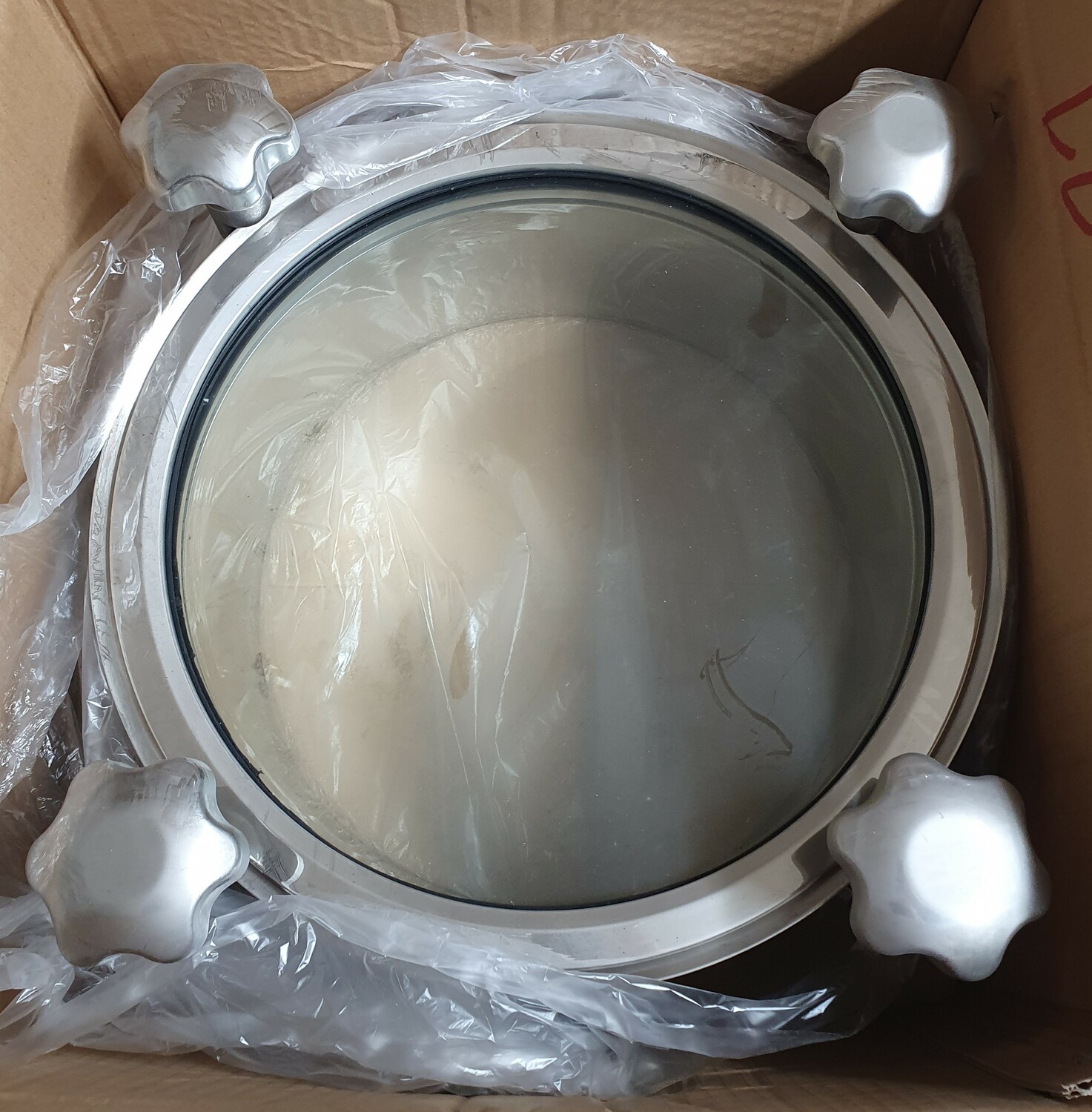 Люк круглый DN450х100 мм со стеклянной крышкой, давление до 3 бар, уплотнение EPDM/Силикон, AISI304, 6 ручек
