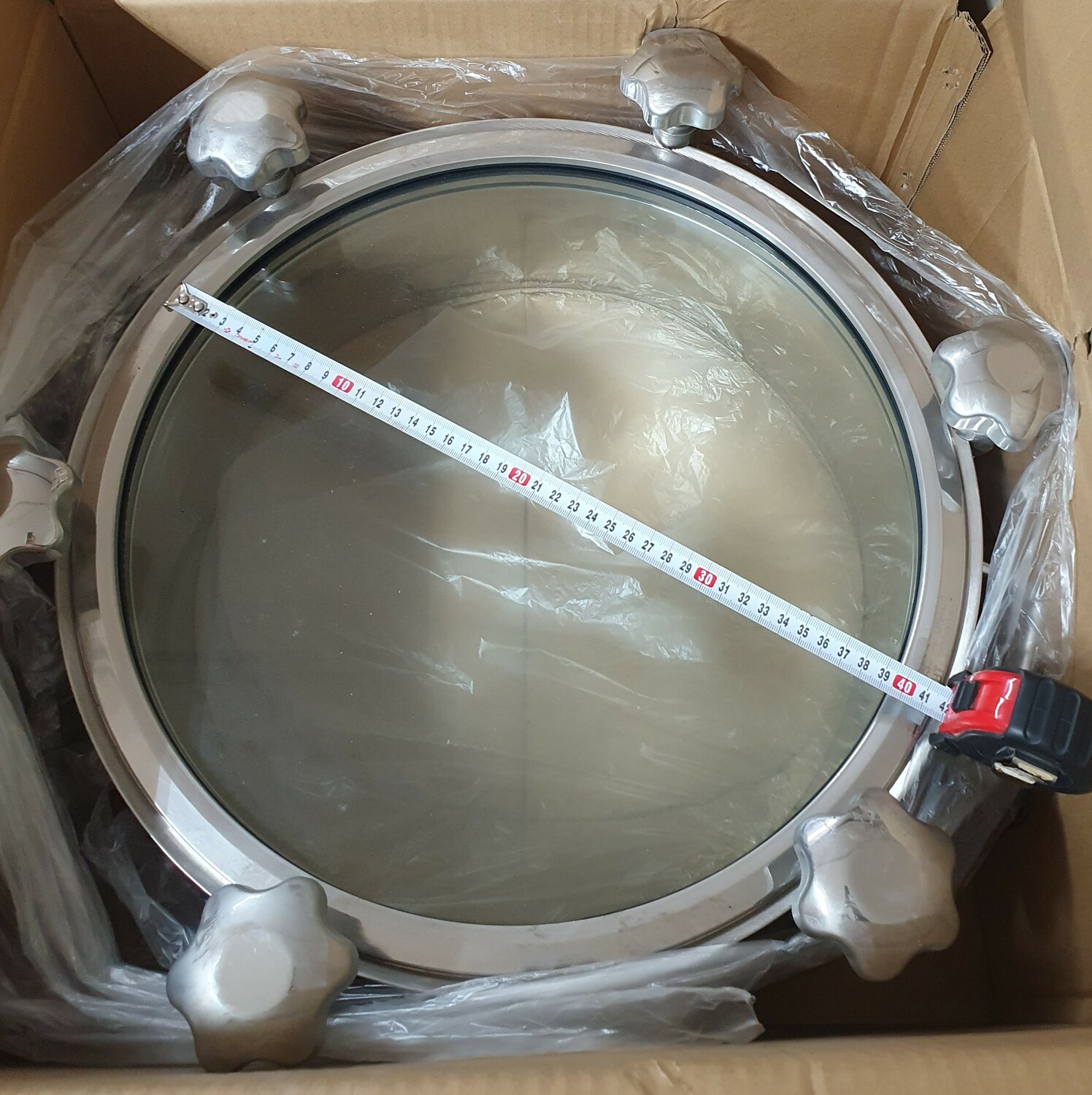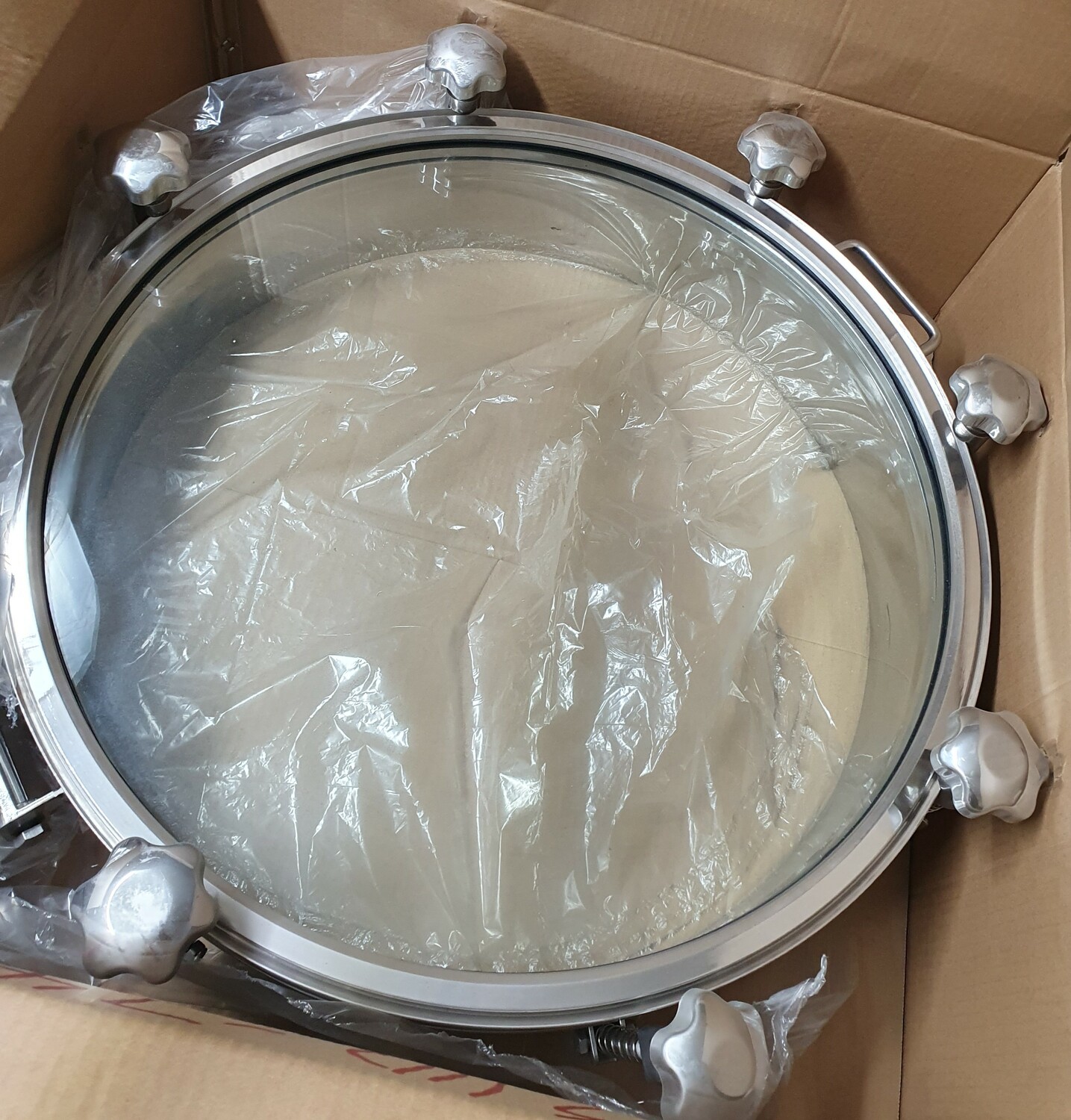 Люк круглый DN450х100 мм со стеклянной крышкой, давление до 3 бар, уплотнение EPDM, AISI304, 6 ручек