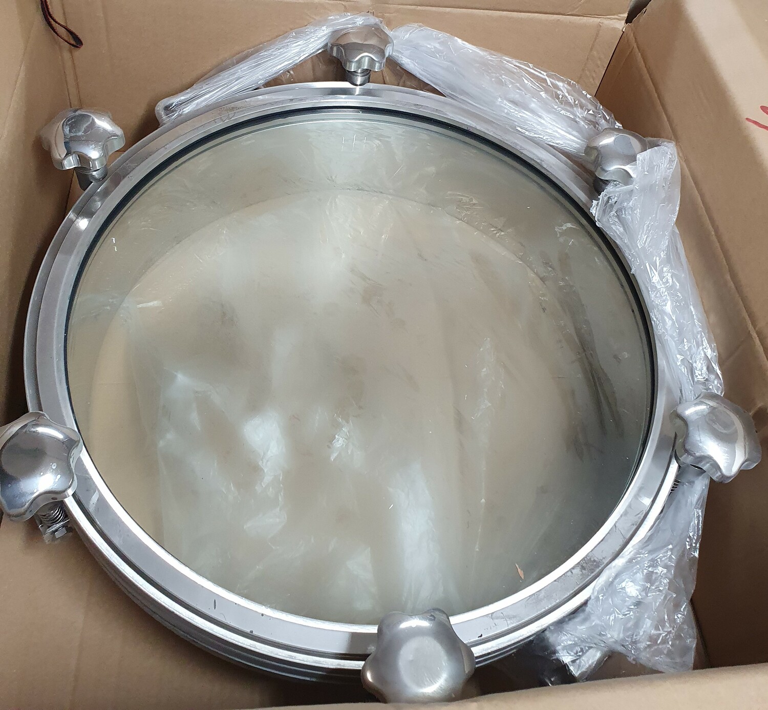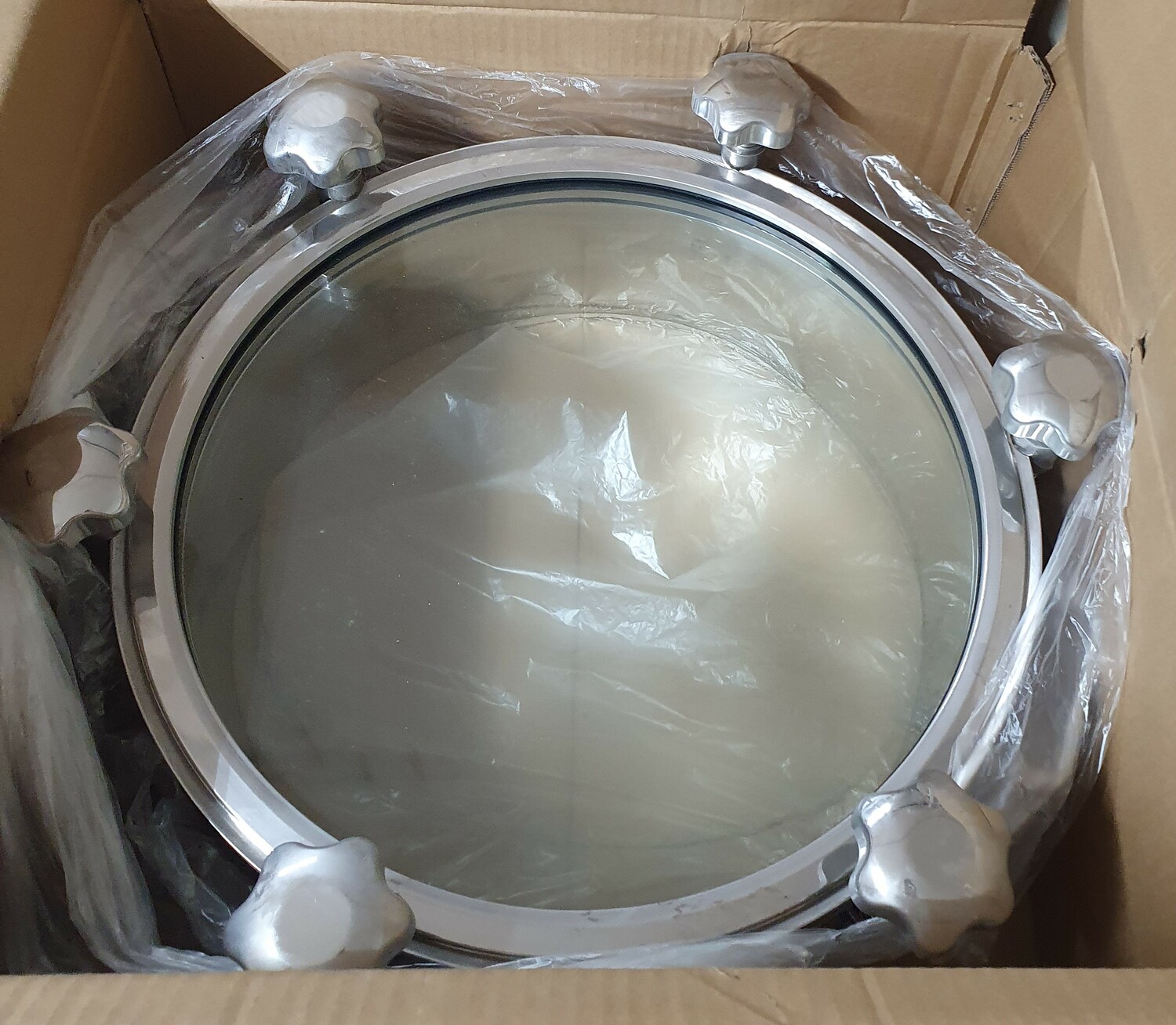Люк круглый DN500х100 мм со стеклянной крышкой, давление до 3 бар, уплотнение EPDM, AISI304, 6 ручек
