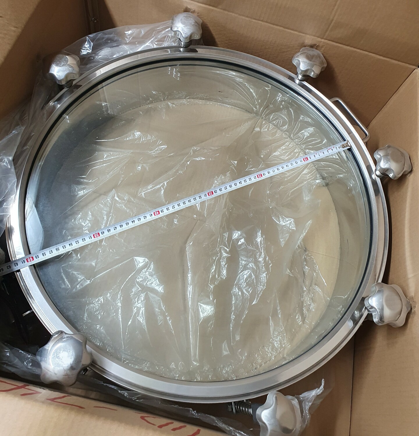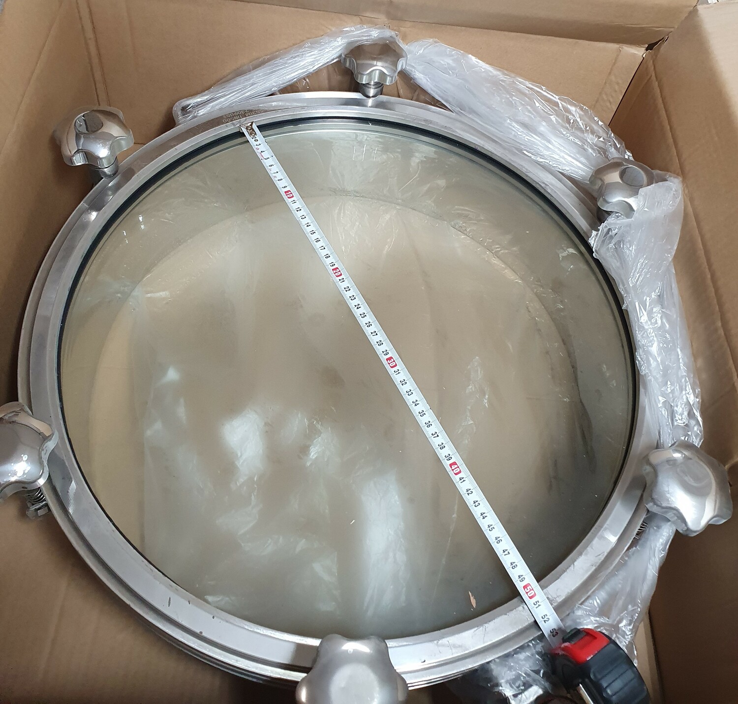 Люк круглый DN500х100 мм со стеклянной крышкой, давление до 3 бар, уплотнение Силикон, AISI304, 6 ручек