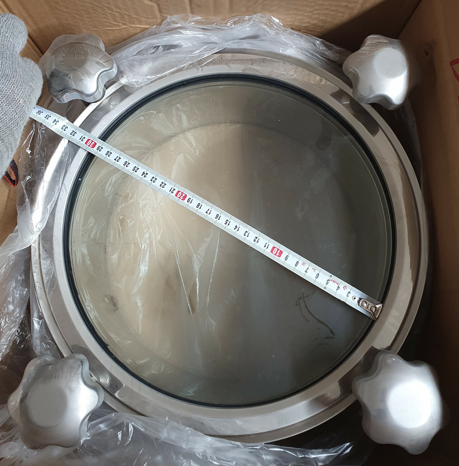 Люк круглый DN300х100 мм со стеклянной крышкой, давление до 3 бар, уплотнение EPDM, AISI304, 4 ручки
